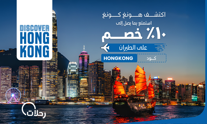 استخدم الكود: HONGKONG واكتشف أجواء هونغ كونغ المميزة بخصم حتى ١٠% على الطيران.