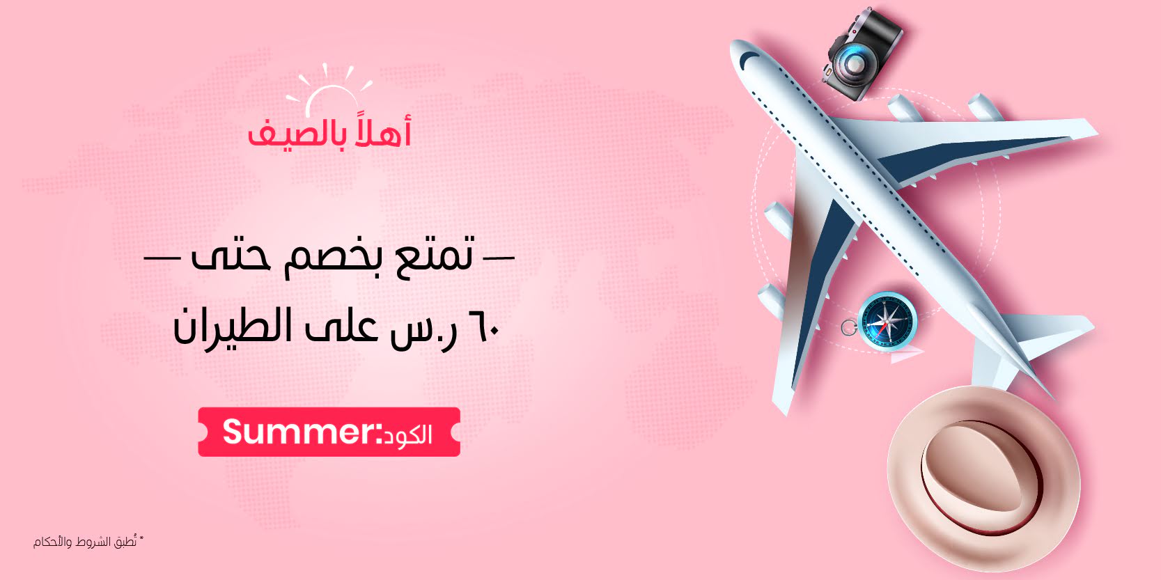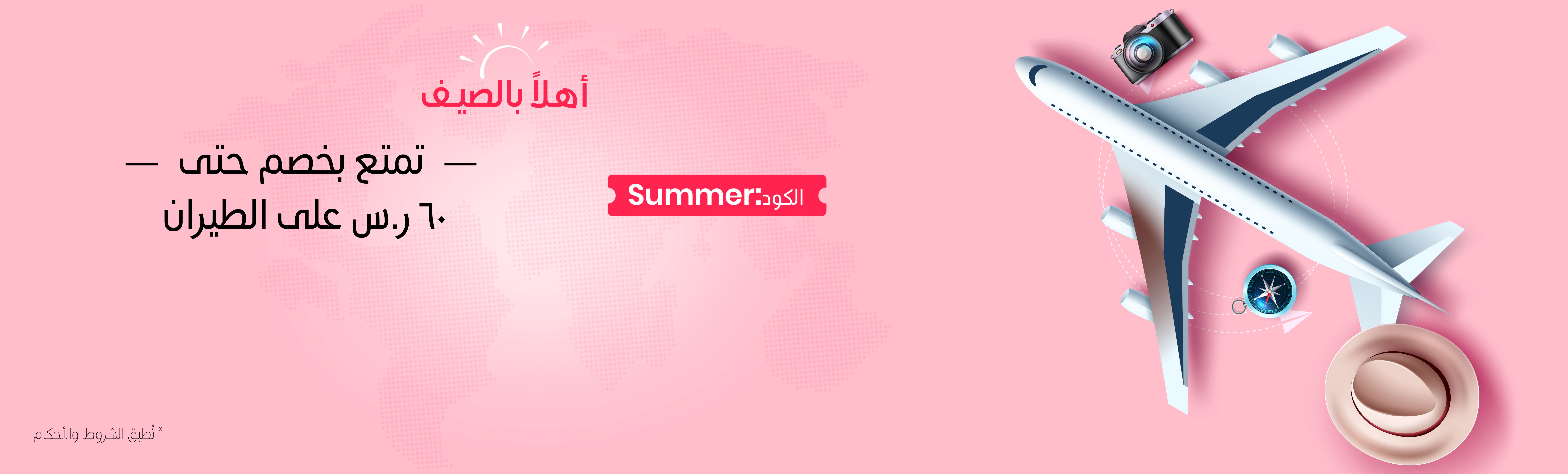 لحظات الصيف المليئة بالمغامرات في انتظارك هذا الموسم .. انطلق لوجهة أحلامك واكتشف العالم! ابدأ رحلتك بعروضنا الصيفية المدهشة واستمتع بخصومات حتى ٦٠ ر.س على الطيران.