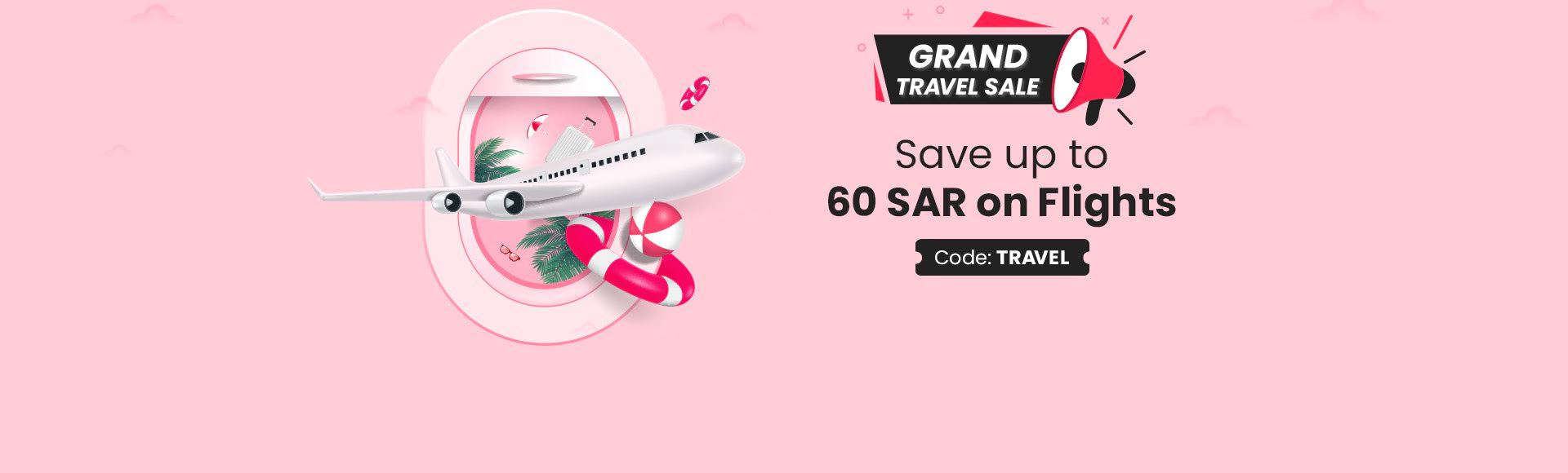 Avail this exclusive offer and get up to 30 SAR instant discount and up to 30 SAR Rehlat Money on Flights. Just use code: TRAVEL while booking.