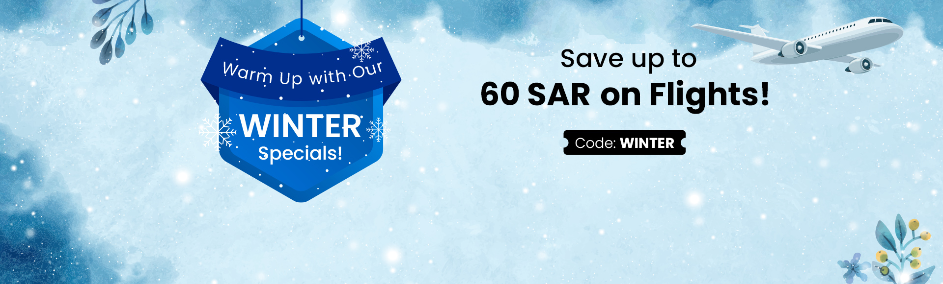 The winter sale is on, and it’s your chance to save big on flights! Get up to 60 SAR off and book the getaway you’ve been dreaming of. Reserve today and let the winter winds take you to your dream destination. Use code: WINTER while booking.